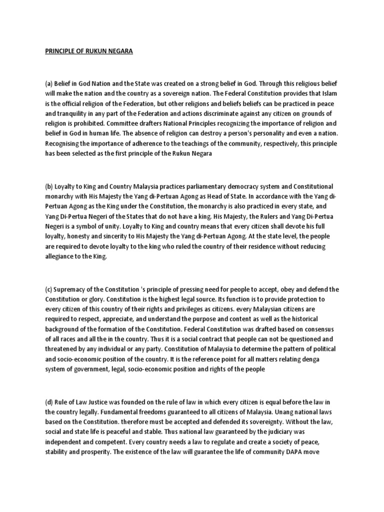 The Rukun Negara Docx The Important Of The Rukun Negara Play In The Role Of Uniting The Malaysian Society In My Opinion The Rukun Negara Is Important Course Hero