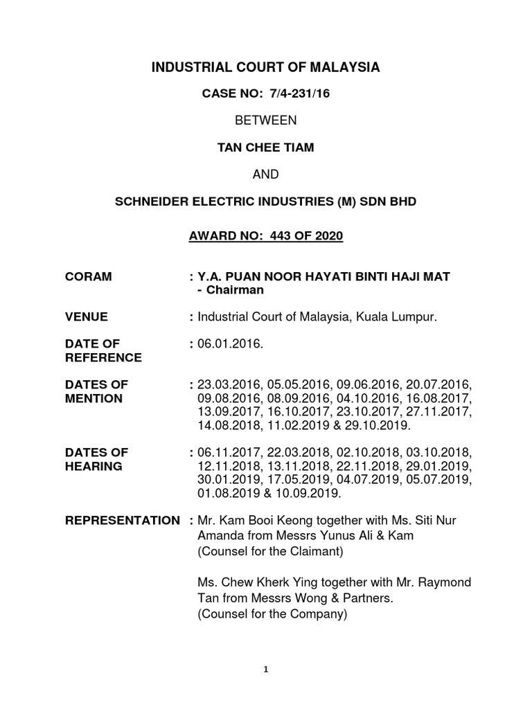 Award 29335 Pdf Industrial Court Of Malaysia Case No 3 4 656 18 Between Reuben Rozario A L Stanley And Ralco Plastic Sdn Bhd Award No 583 Of 2019 Course Hero