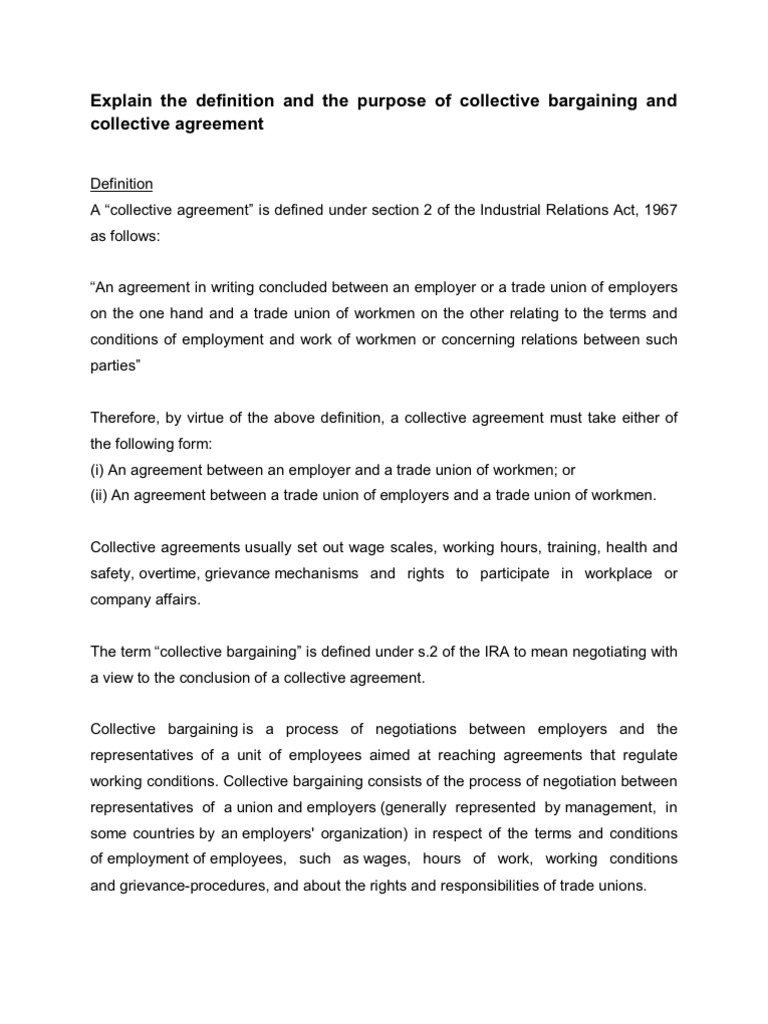 Explain The Definition And The Purpose Of Collective Bargaining And Collective Agreement Collective Bargaining Trade Union