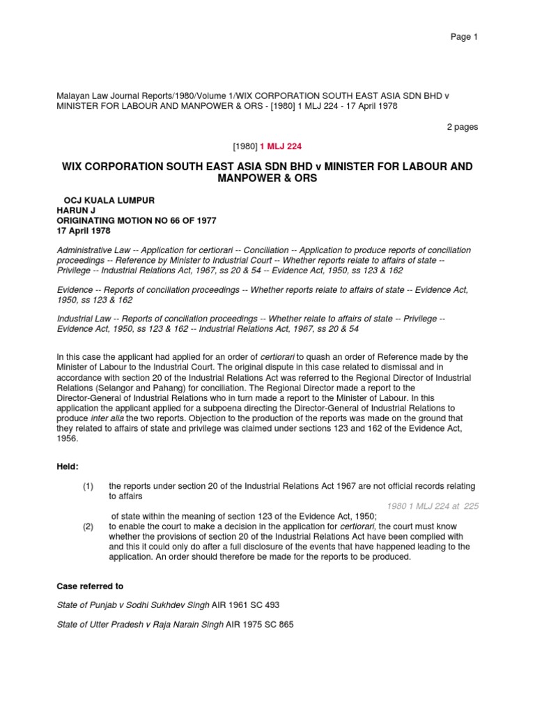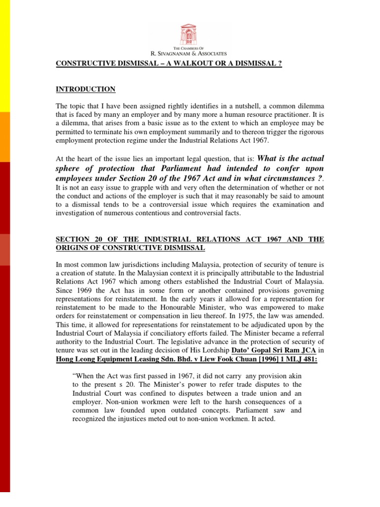 Workers Rights As In Section 20 1a Industrial Relations Act 1967 A Trade Union Response