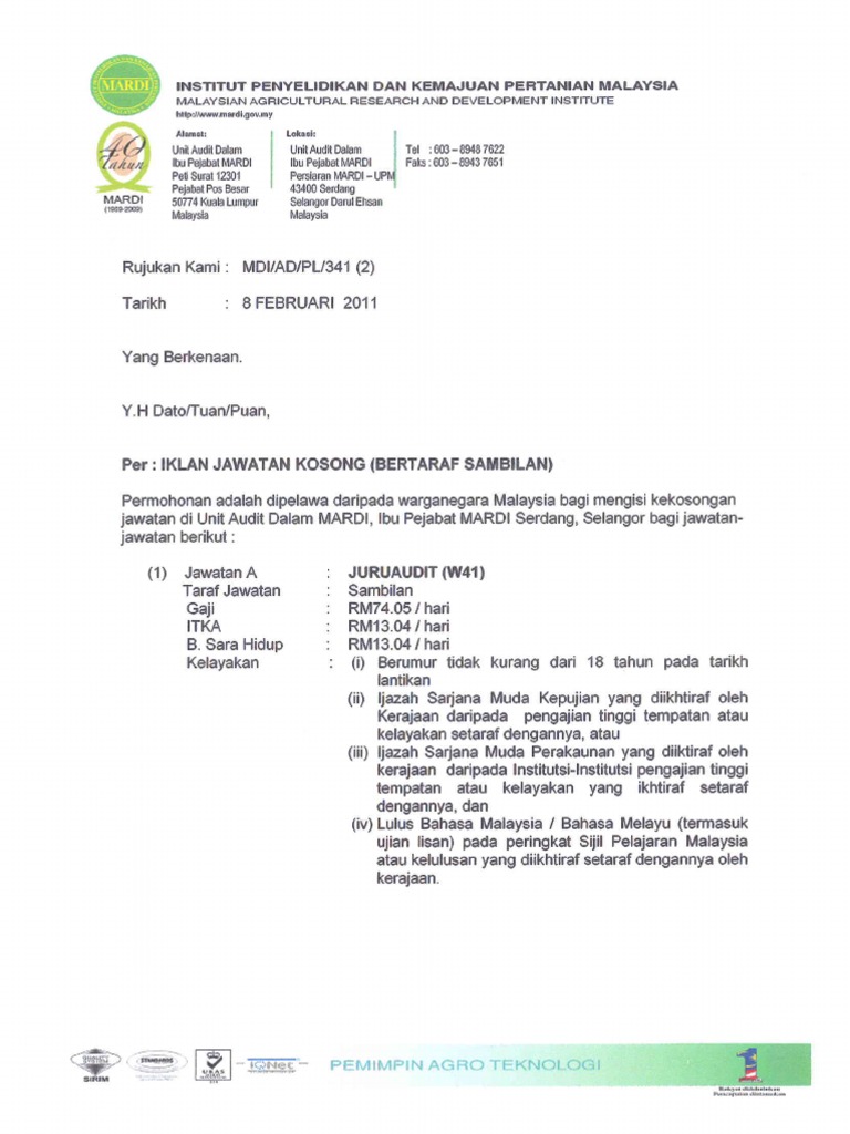 Permohonan Jawatan Kosong Institut Penyelidikan Dan Kemajuan Pertanian Malaysia Mardi Portal Kerja Kosong Graduan