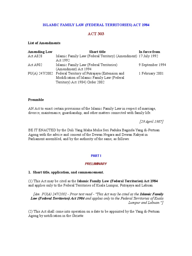 Islamic Family Law Federal Territories Act 1984 Act 303 Pnmb2u