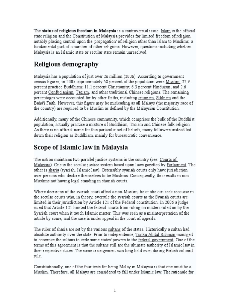 The Status Of Religious Freedom In Malaysia Is A Controversial Issue Doc Sharia Religious Conversion Free 30 Day Trial Scribd