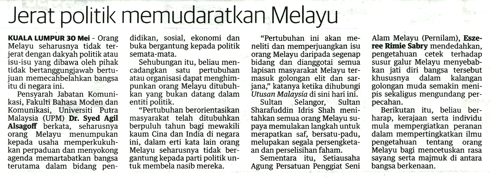Uniputramalaysia On Twitter Jerat Politik Memudaratkan Melayu Utusan Malaysia 31 Mei 2019 Upmclipping Putraclipping