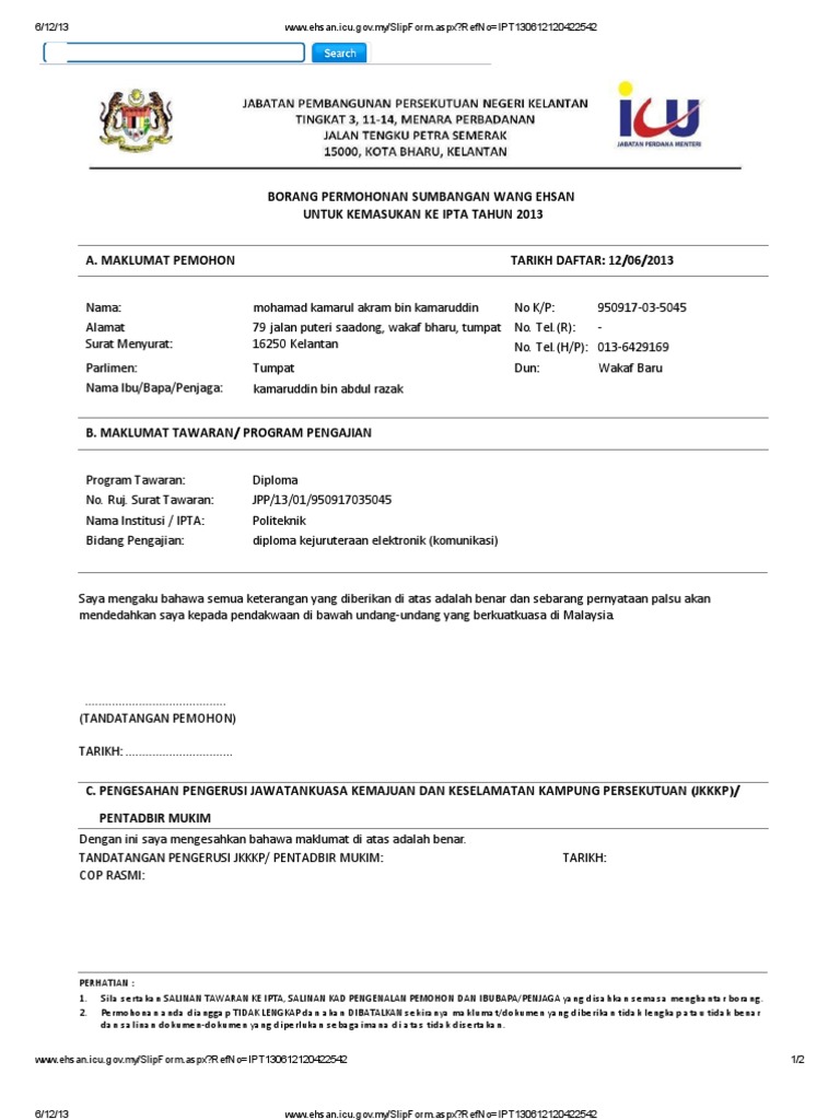 Permohonan Wang Ehsan Negeri Kelantan Untuk Ipta 2019 2010 Melur Net