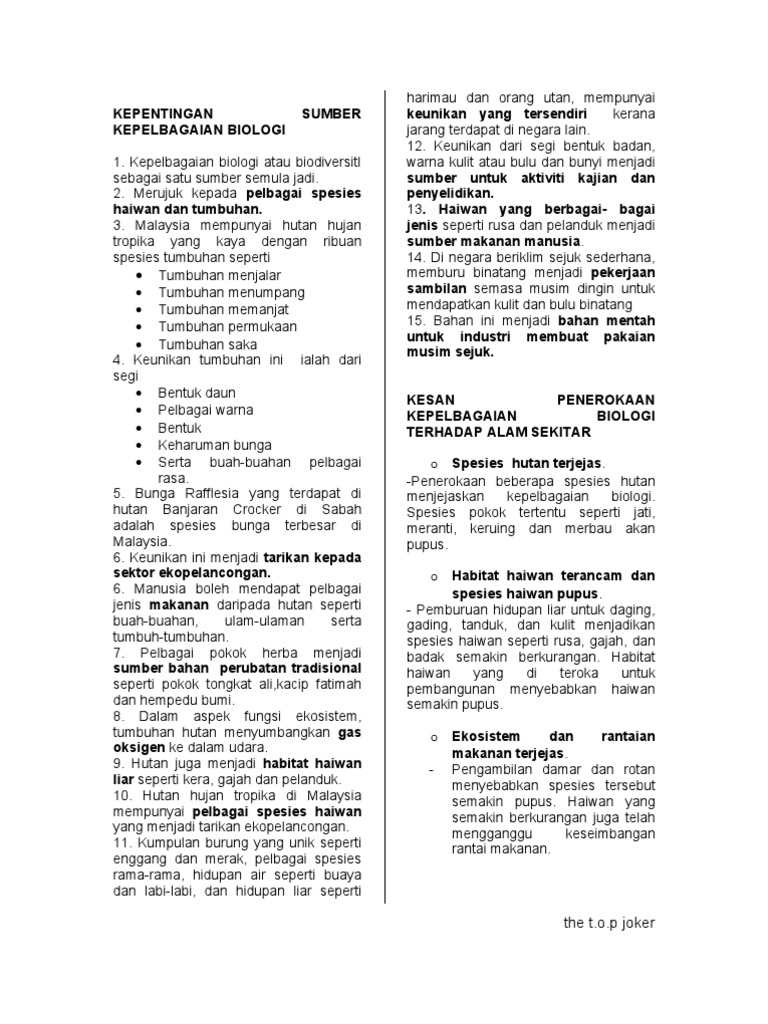 Kepentingan Sumber Kepelbagaian Biologi Geografi Tingkatan 5