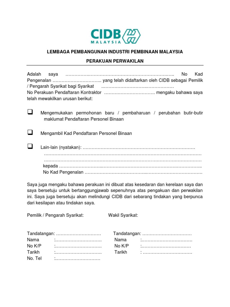 Fillable Online Keperluan Dan Prosedur Pendaftaran Kontraktor Dengan Cidb Fax Email Print Pdffiller
