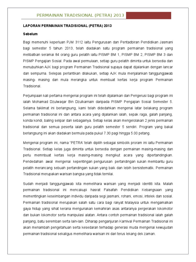 Kepentingan Permainan Tradisional Kepentingan Permainan Tradisional Permainan Tradisional Merupakan Warisan Budaya Masyarakat Melayu Yang Tidak Course Hero