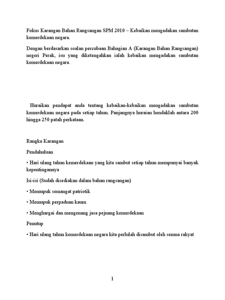 Doc Fokus Karangan Bahan Rangsangan Spm 2010 Kebaikan Mengadakan Sambutan Kemerdekaan Negara Zinon Abidin Academia Edu