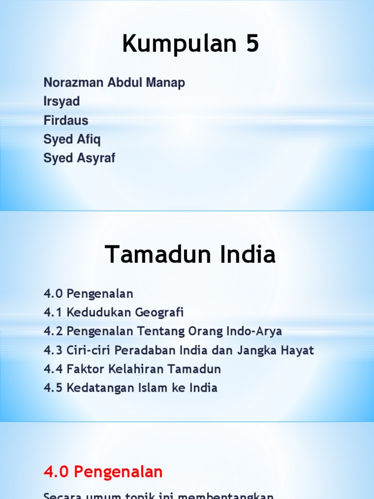 Tamadun India Pptx Tamadun India Bab 4 1 Kandungan Kedudukan Geografi Orang Indo Arya Ciri Ciri Peradaban India Faktor Kelahiran Tamadun Agama Dan Course Hero