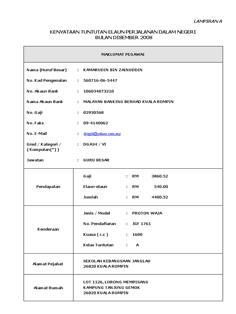 Kenyataan Tuntutan Elaun Perjalanan Dalam Lampiran A Kenyataan Tuntutan Elaun Perjalanan Dalam Pdf Document