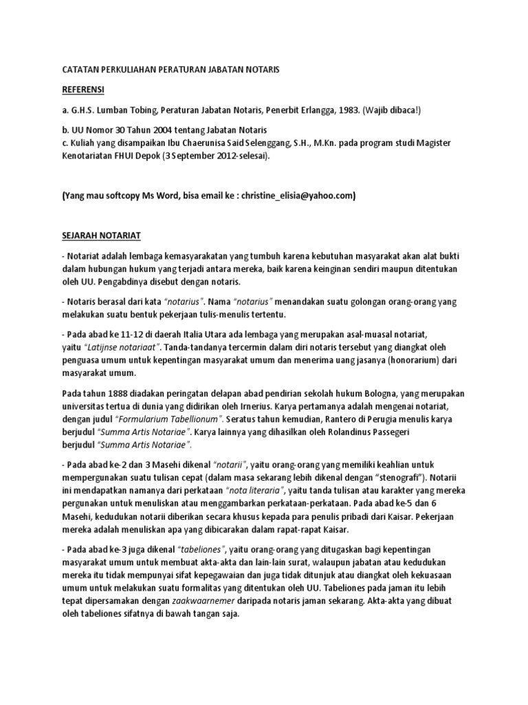 Catatan Perkuliahan Peraturan Jabatan Notaris