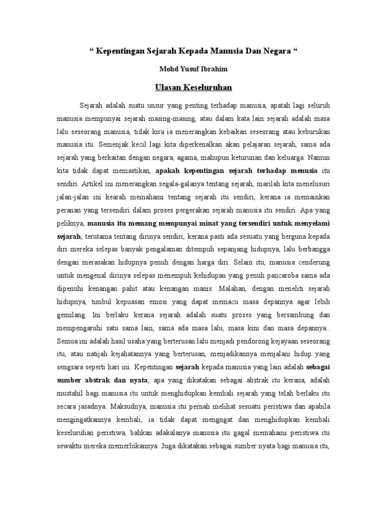 Doc Kepentingan Sejarah Kepada Manusia Dan Negara Liza Isma Academia Edu