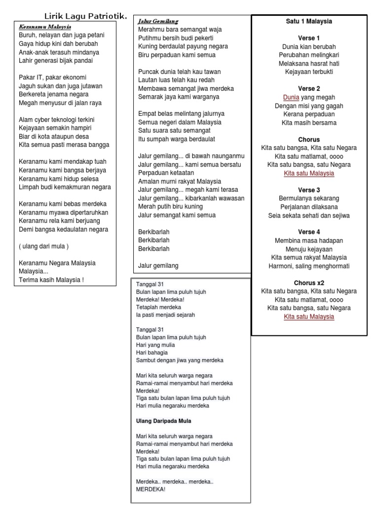Lirik Lagu Patriotik Malaysia