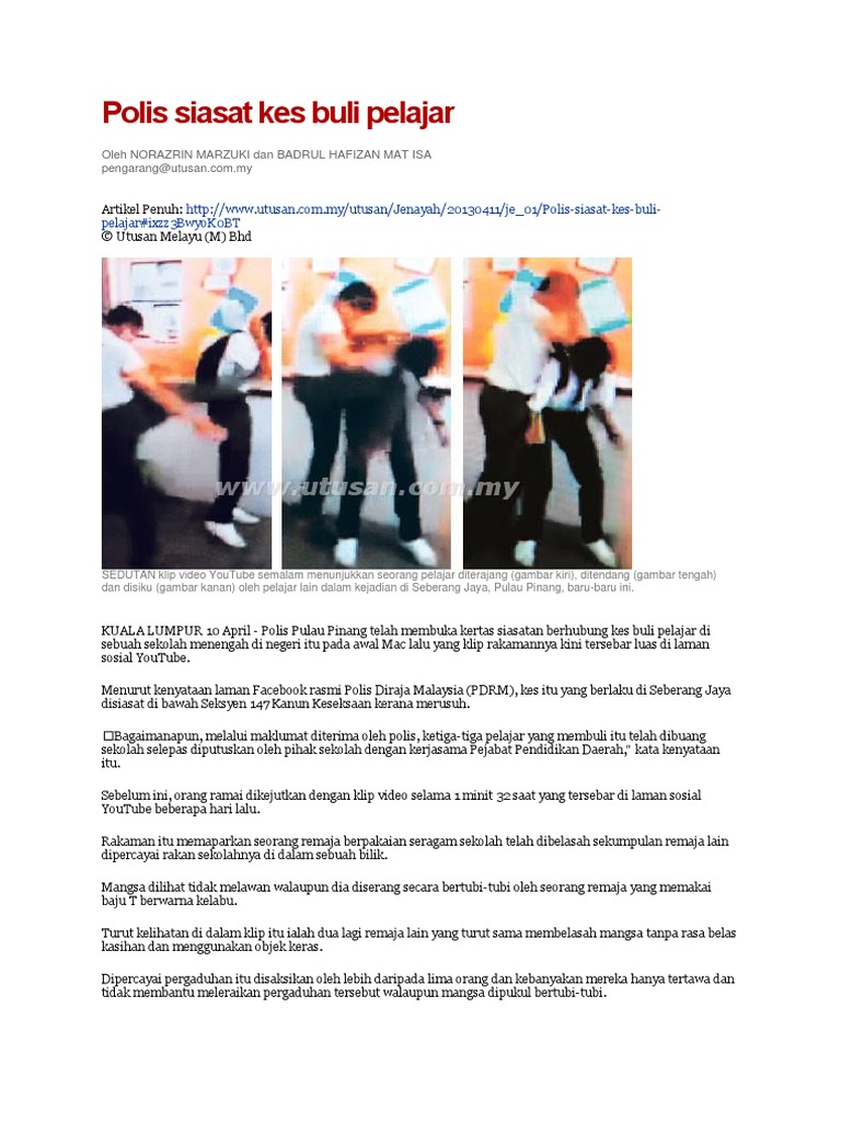 Polis Siasat Kes Buli Pelajar Pelajar Ixzz3bwyok0bt