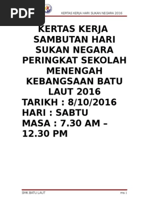 Kertas Kerja Hari Sukan Negara 2016 Docx Documents