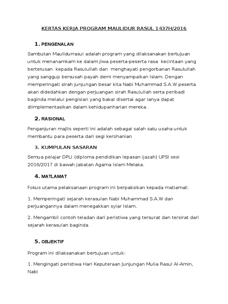 Kertas Kerja Sambutan Maulidur Rasul Docx Document