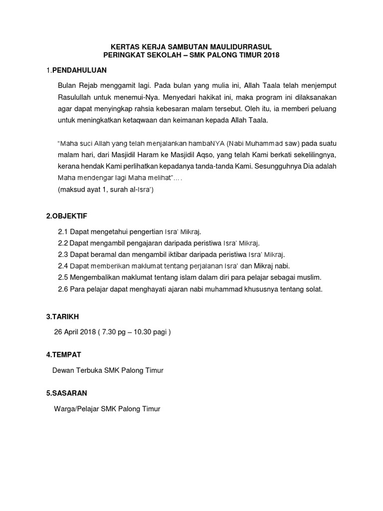 Kertas Kerja Majlis Sambutan Maulidurrasul Peringkat Sekolah 2017 Docx Documents