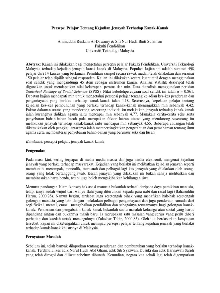 Persepsi Pelajar Tentang Kejadian Jenayah Terhadap Kanak Copy