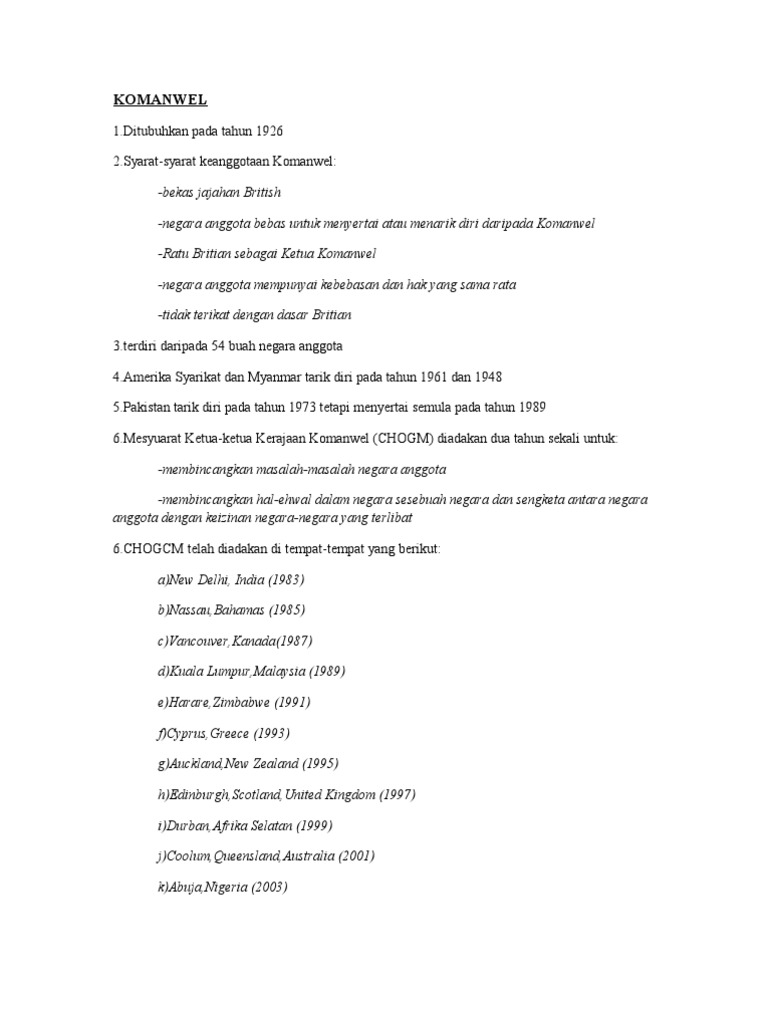 Penglibatan Malaysia Dalam Pertubuhan Komanwel M Update