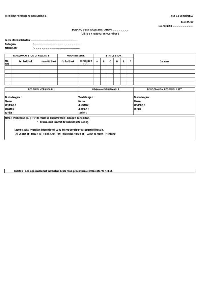 Kew Ps 13 Terkini Doc Kew Ps 13 Laporan Kedudukan Stok Tahun U2026 U2026 2018 U2026 U2026 U2026 U2026 Tatacara Pengurusan Stor 33 Kementerian Jabatan Kategori Stor Course Hero