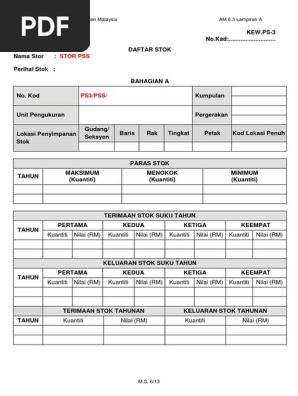 Kerajaan Malaysia Tatacara Pengurusan Stor Aims Mod Gov My Pekelilings Am 6 3 Pdflampiran Bpps Borang Pesanan Pengeluaran Stok Kew Ps 10 Bps Borang Permohonan Stok Kew Ps 11