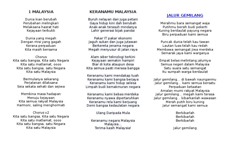 Lirik Lagu Satu 1 Malaysia Docx Document