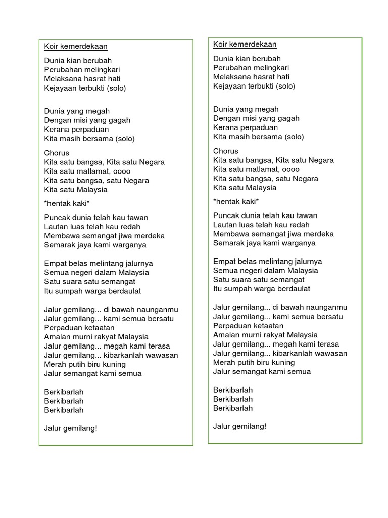 Bahtera Merdeka Lirik Lagu 1 Malaysia Koir Pelajar