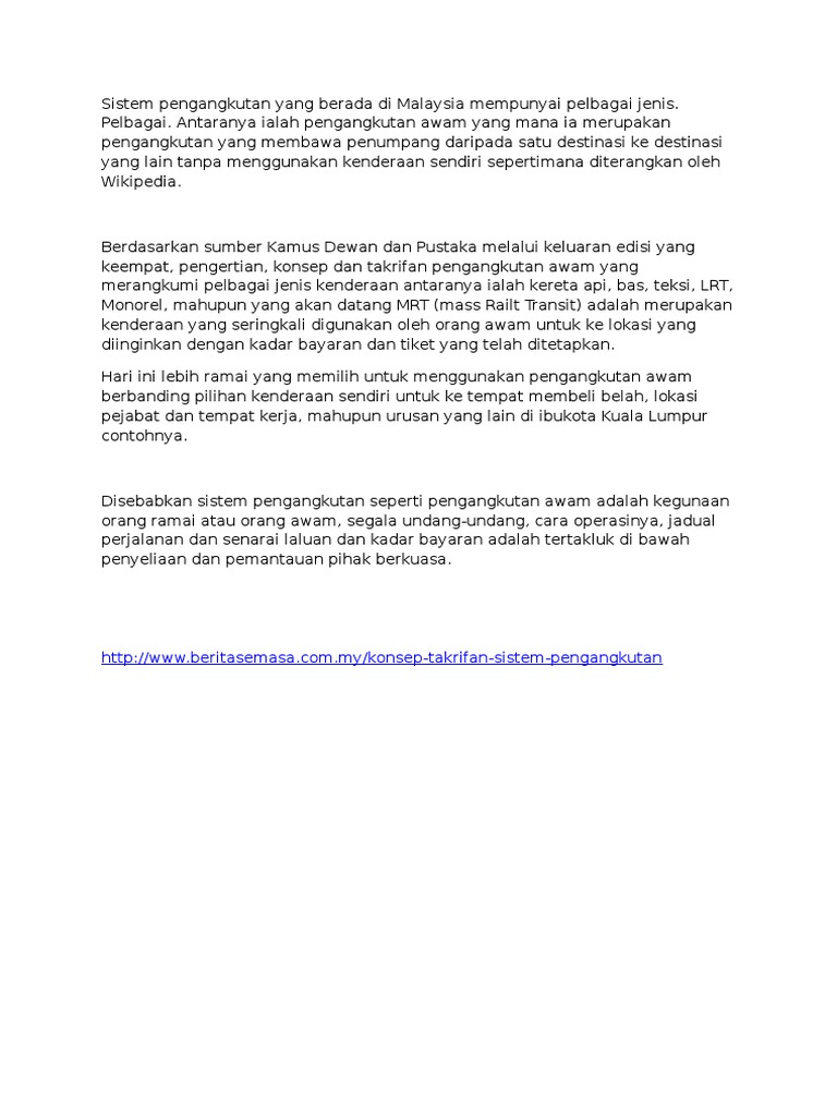 Contoh Konsep Dan Takrifan Sistem Pengangkutan Di Malaysia