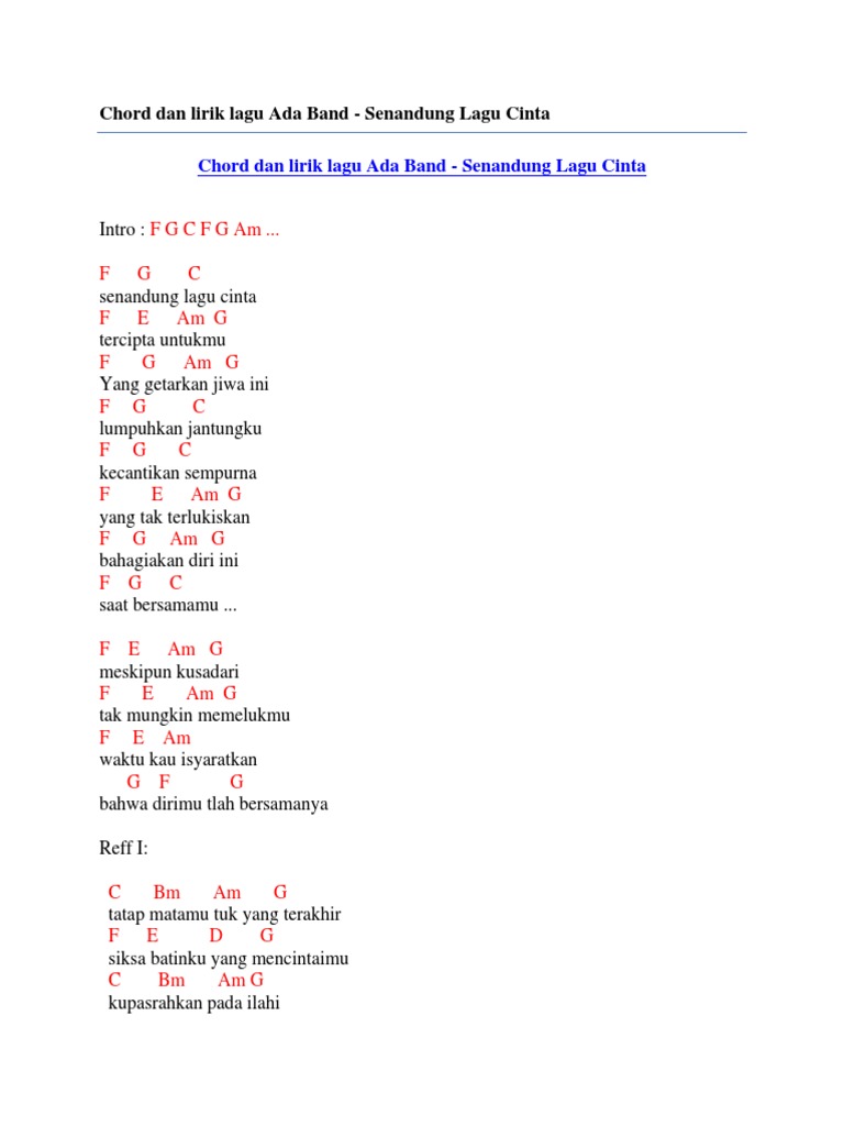 Chord Dan Lirik Lagu Ada Band Senandung Lagu Cinta By Chord Zila Issuu