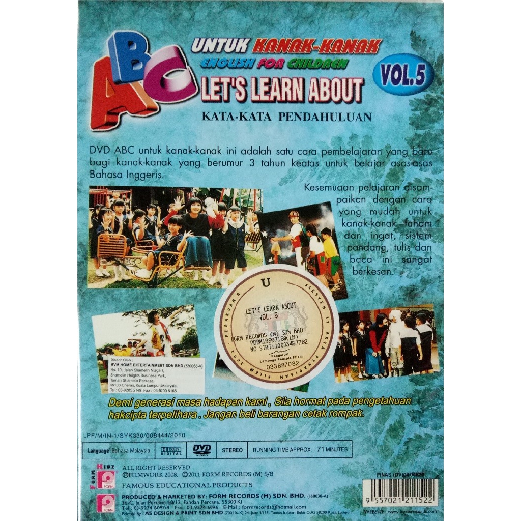 Abc Untuk Kanak Kanak Vol 5 Dvd Malay Version Shopee Malaysia