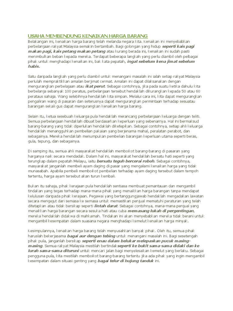 Contoh Karangan Bahasa Melayu Spm Kertas 1 Isu Kenaikan Harga Barang Karangan Bahasa Melayu Spm