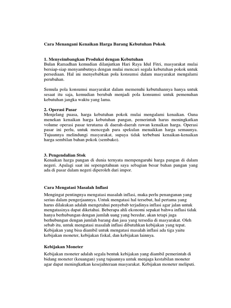 Cara Menangani Kenaikan Harga Barang Kebutuhan Pokok Menjelang Idul Fitri Pendidikan Ekonomi