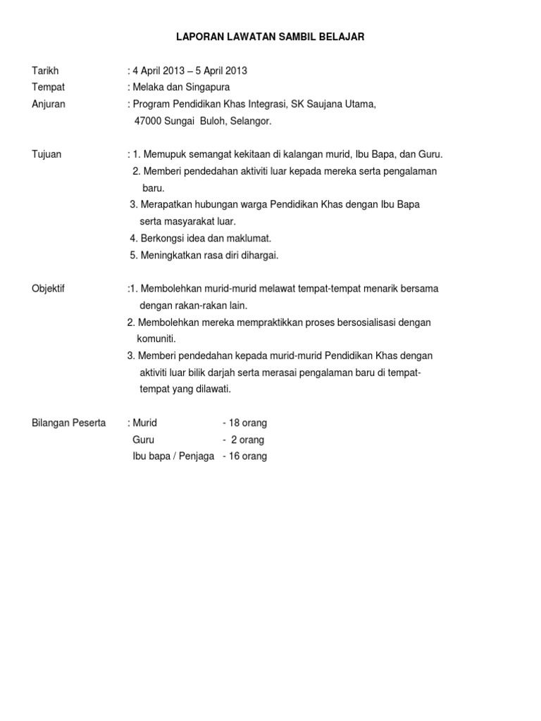 Laporan Lawatan Sambil Belajar Selama Dua Hari Pdf Document