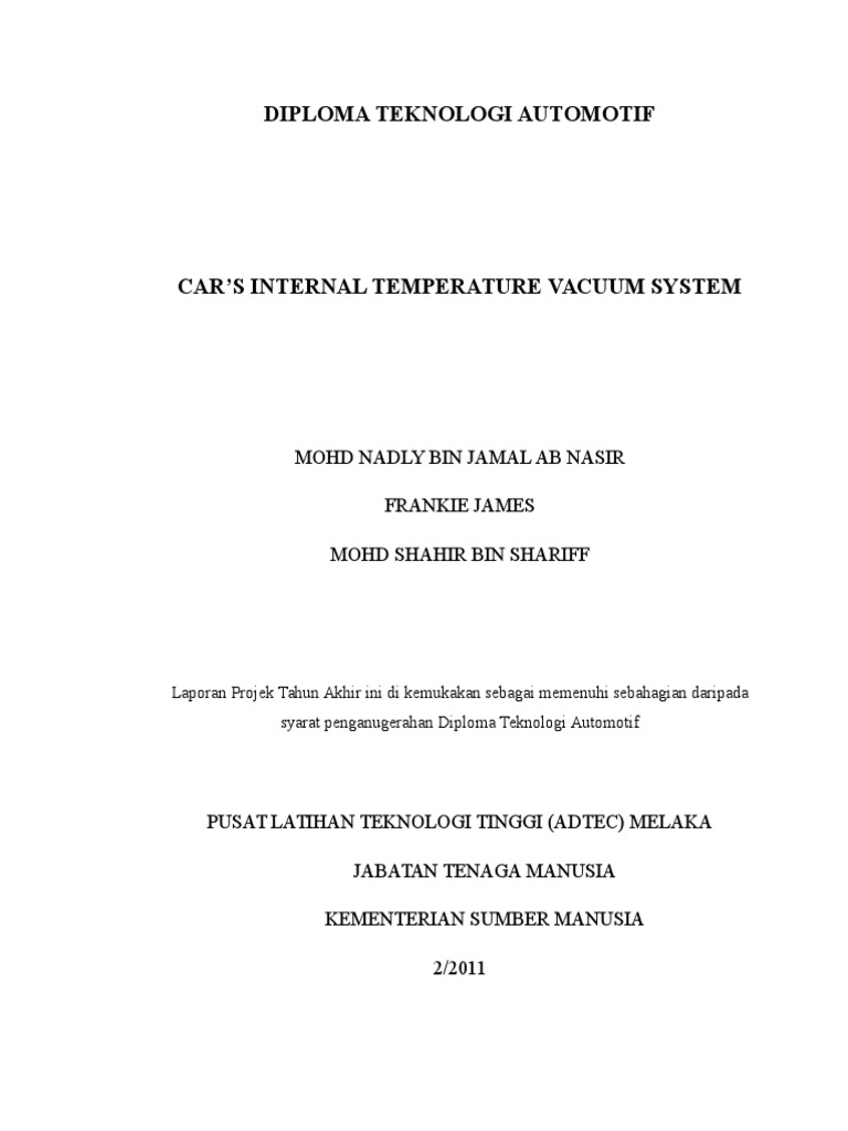 Projek Tahun Akhir Kolej Vokasional Tanjung Puteri Teknologi Automotif Youtube