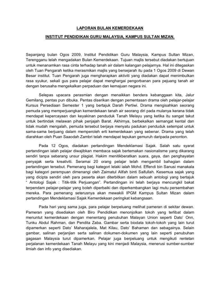 Contoh Karangan Laporan Sambutan Kemerdekaan Peringkat Sekolah Reljo3m7z7n1