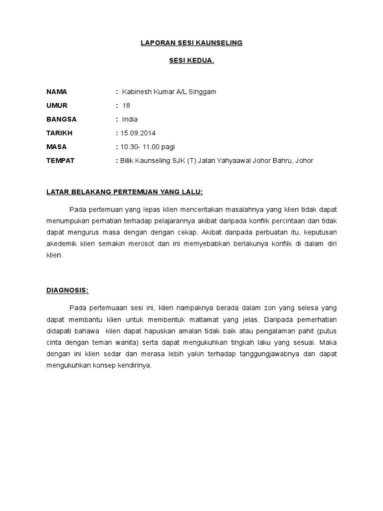 Pdf Laporan Kaunseling Kes Klien