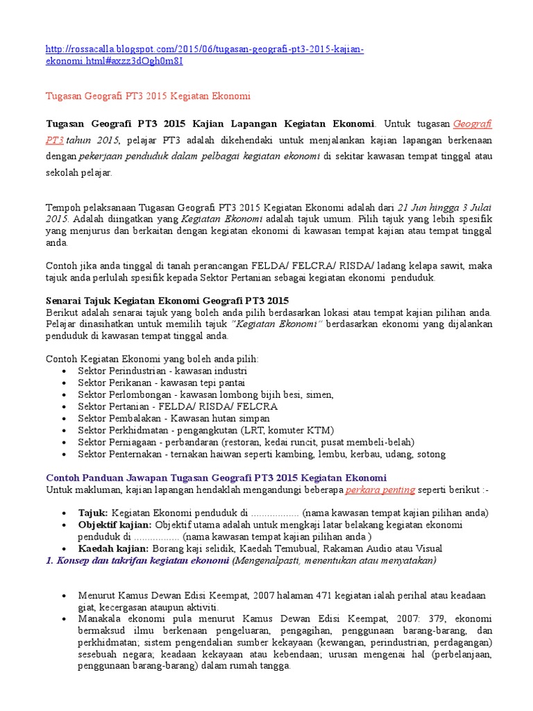 Contoh Jawapan Tugasan Geografi Pt3 2015 Kegiatan Ekonomi Pdf Document