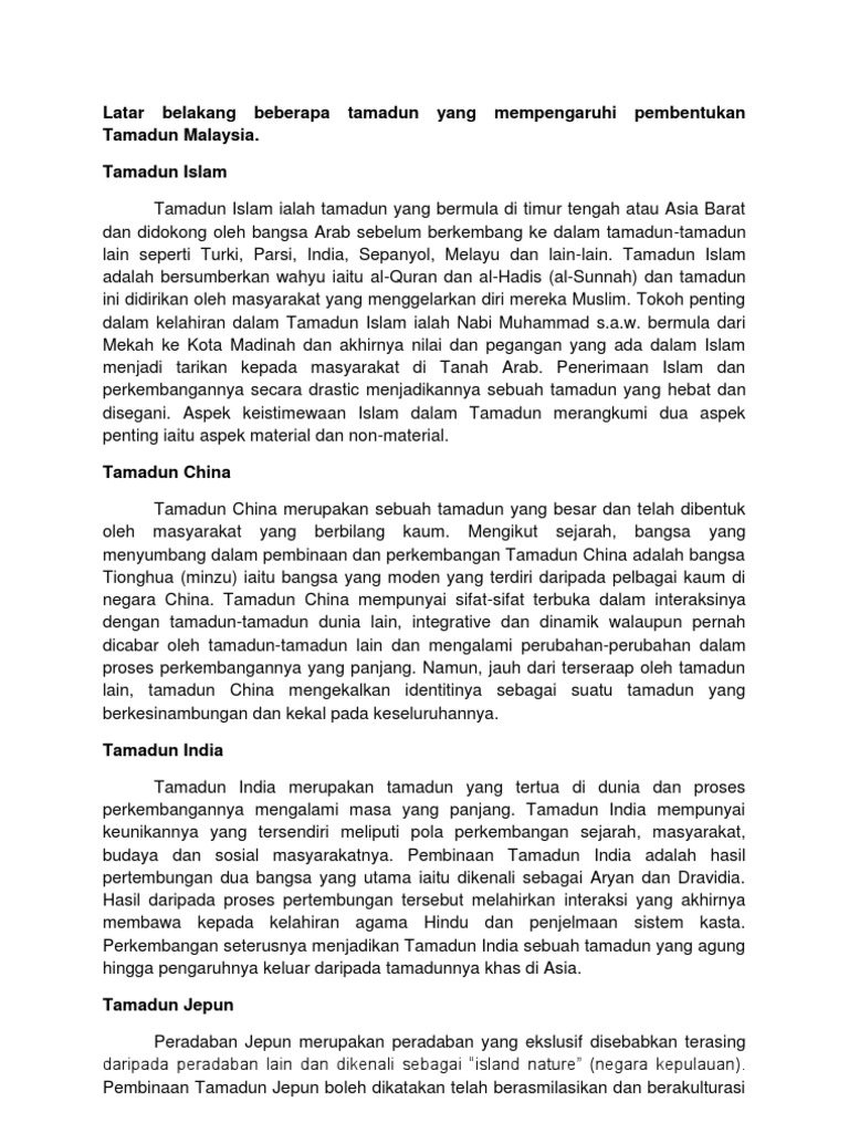 Latar Belakang Beberapa Tamadun Yang Mempengaruhi Pembentukan Tamadun Malaysia