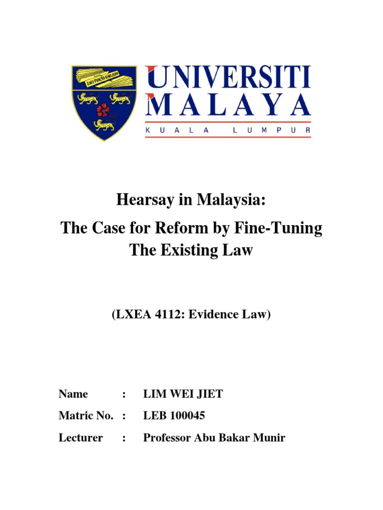 Hearsay In Malaysia The Case For Rekkform Hearsay Witness Impeachment