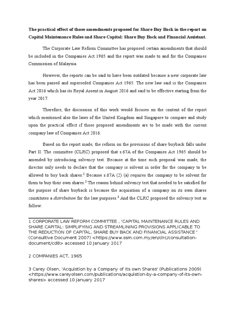 Practical Effect On Law Reform On Sbb Treasury Stock Share Repurchase