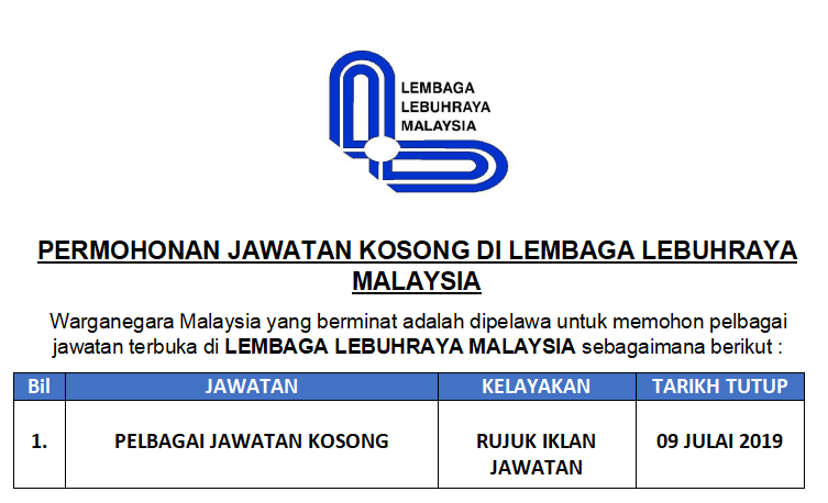 Jawatan Kosong Di Lembaga Lebuhraya Malaysia Llm 09 Ogos 2018 Hati Anak Muda