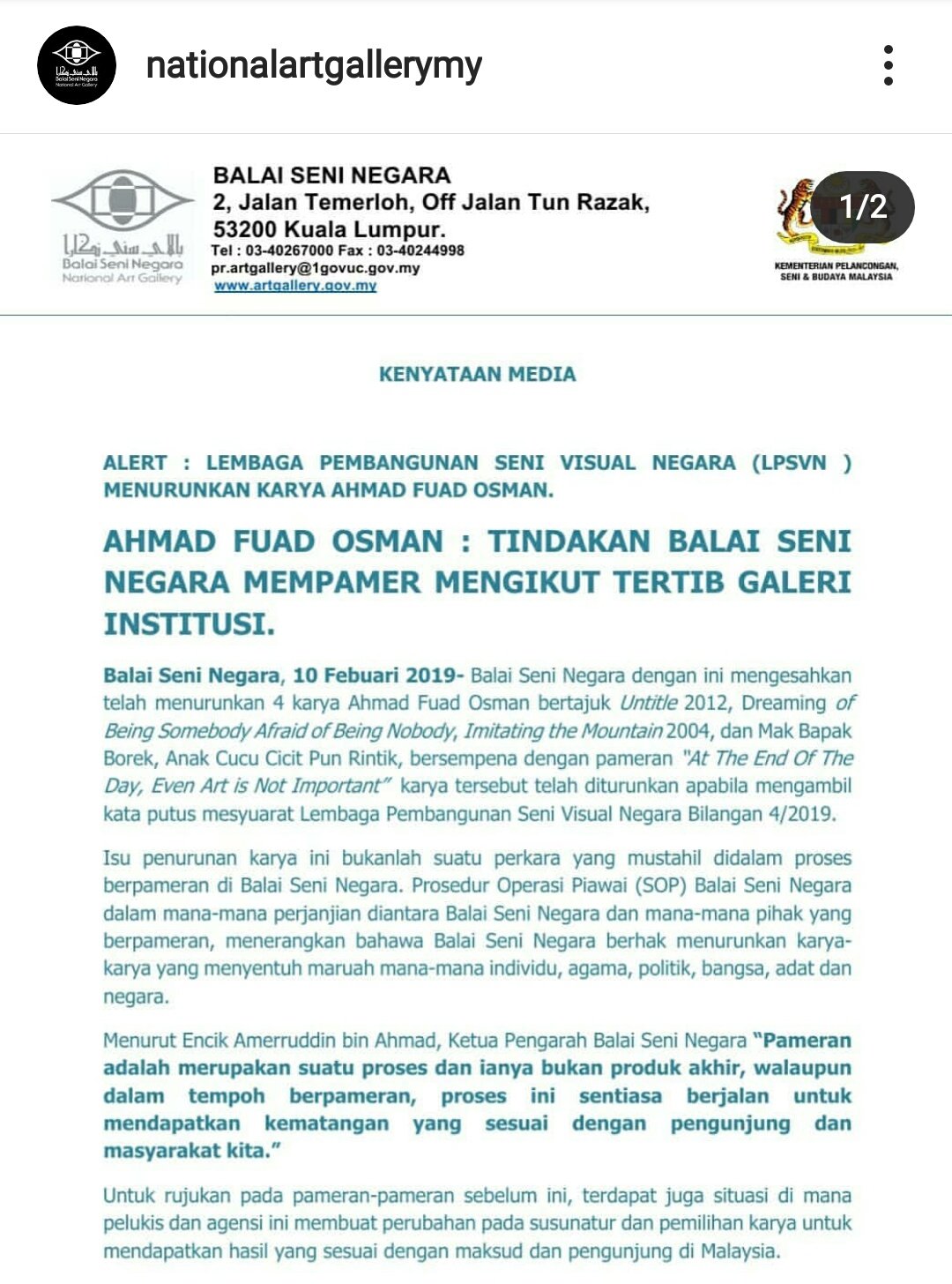 Aidila Razak On Twitter Balai Seni Negara Responds To Say They Re Government Funded So Must Follow The Rules Https T Co Ls1tbtnwqh