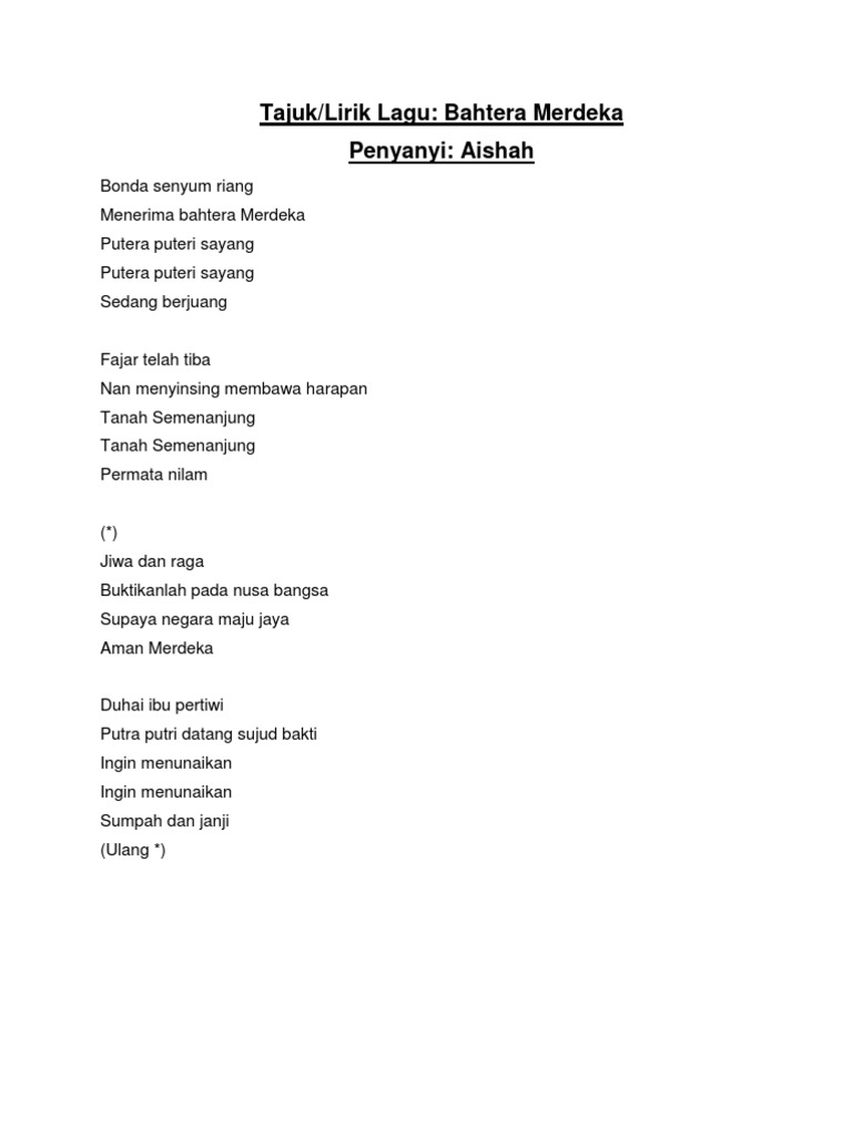 Aishah Bahtera Merdeka Lyrics Lyrics My