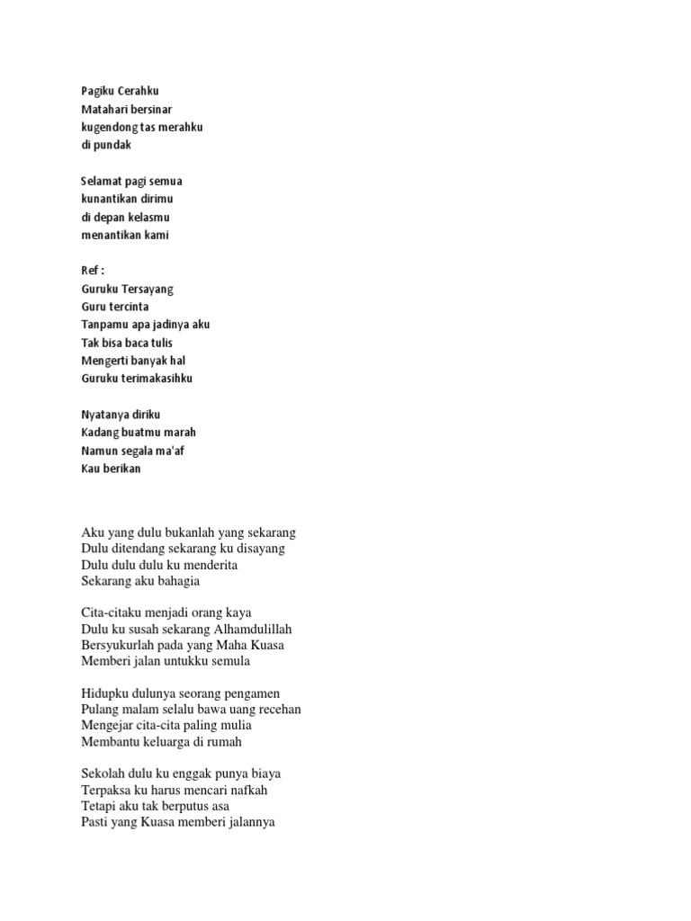 Lirik Lagu Terima Kasih Guruku Pagiku Cerahku Seputaran Guru