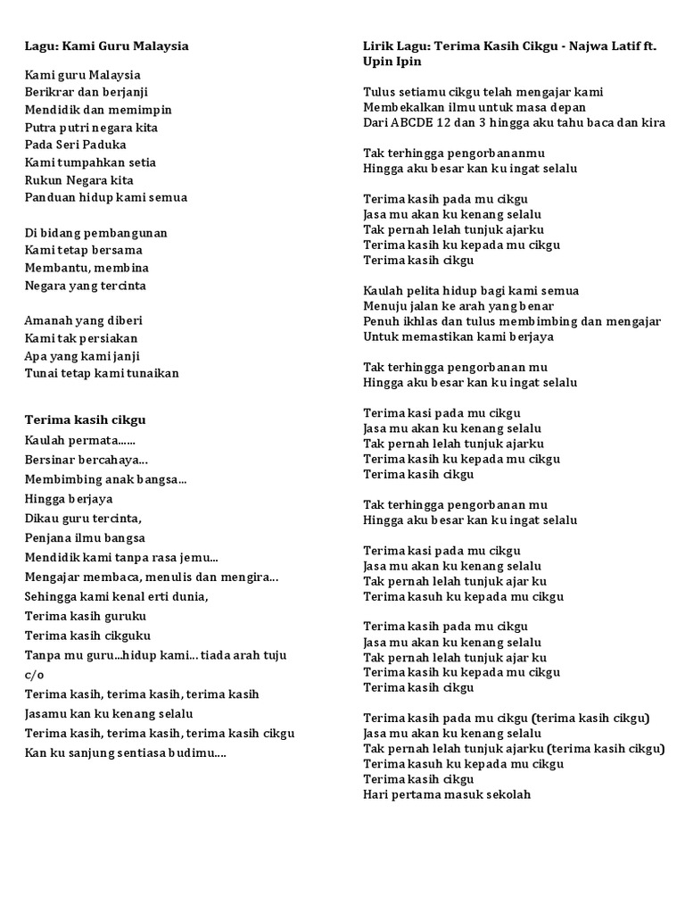 296 Lagu Tema A Lirik Hari Guru 2012 Pdf Document