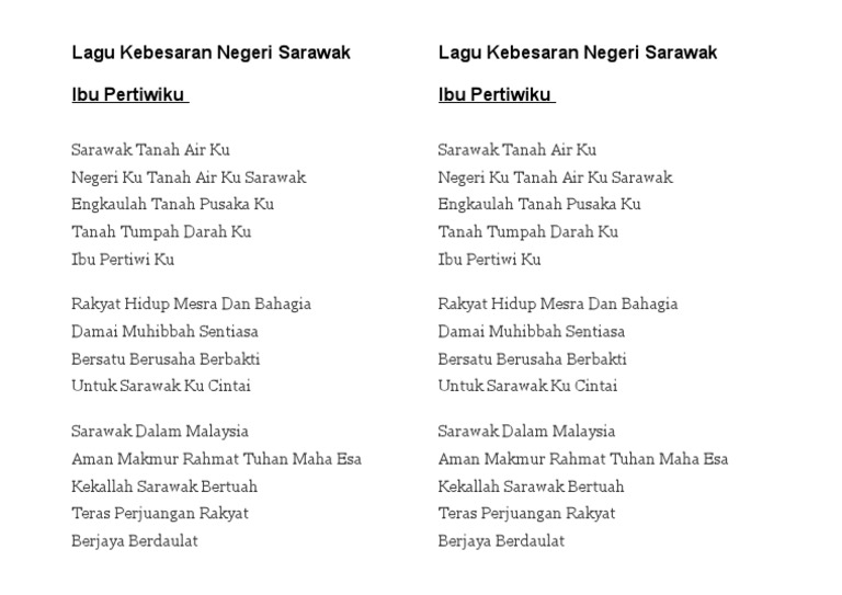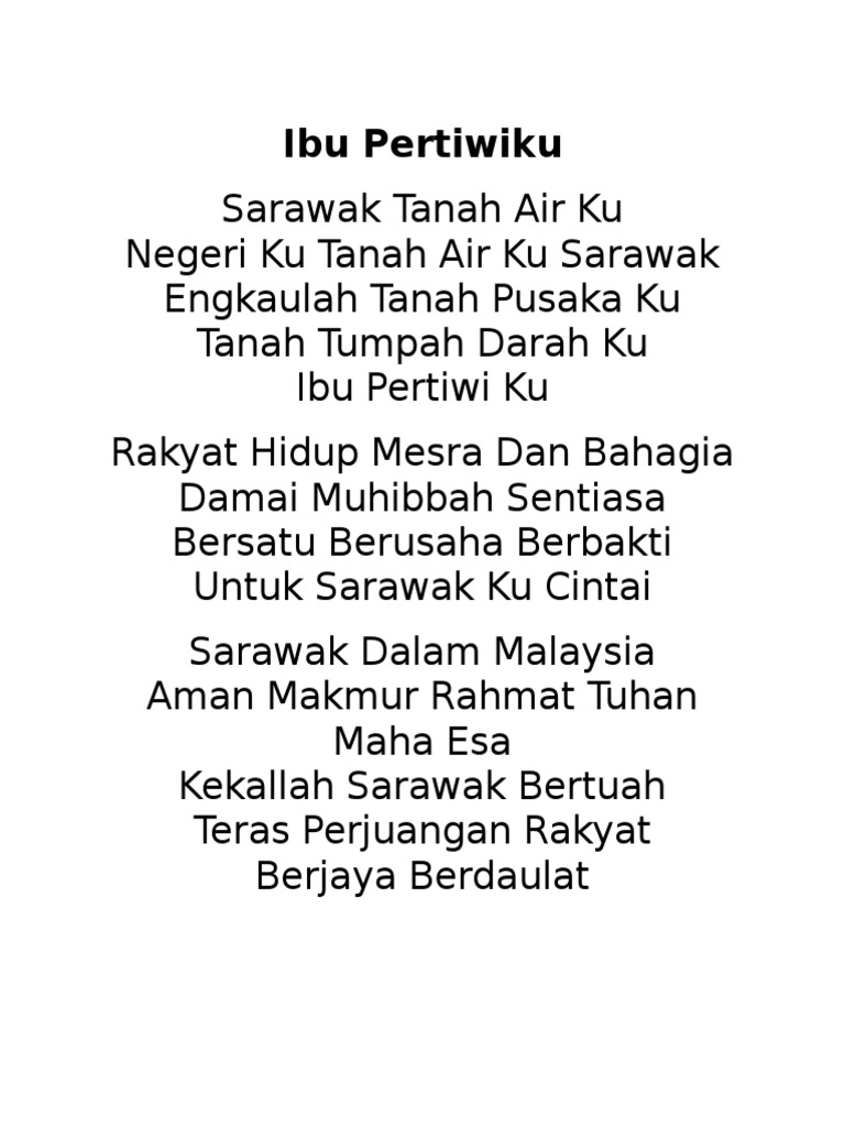 Lirik Lagu Ibu Pertiwiku Lagu Kebesaran Negeri Sarawak