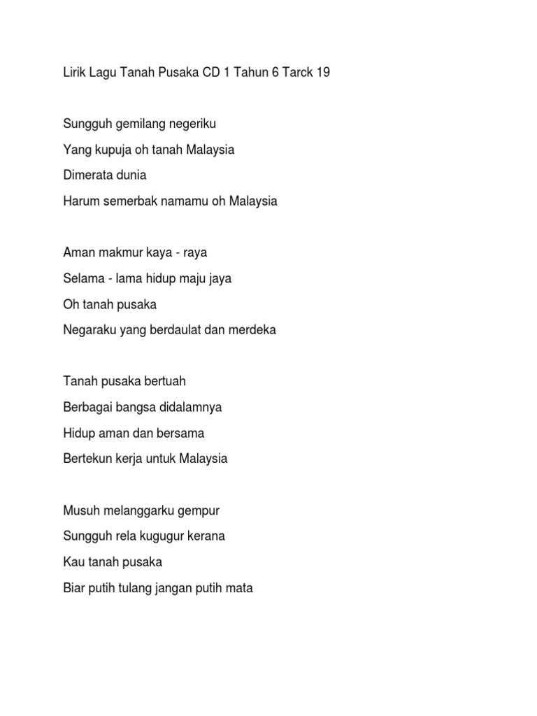 Tanah Pusaka Minus One Lirik By Patriotik Malaysia