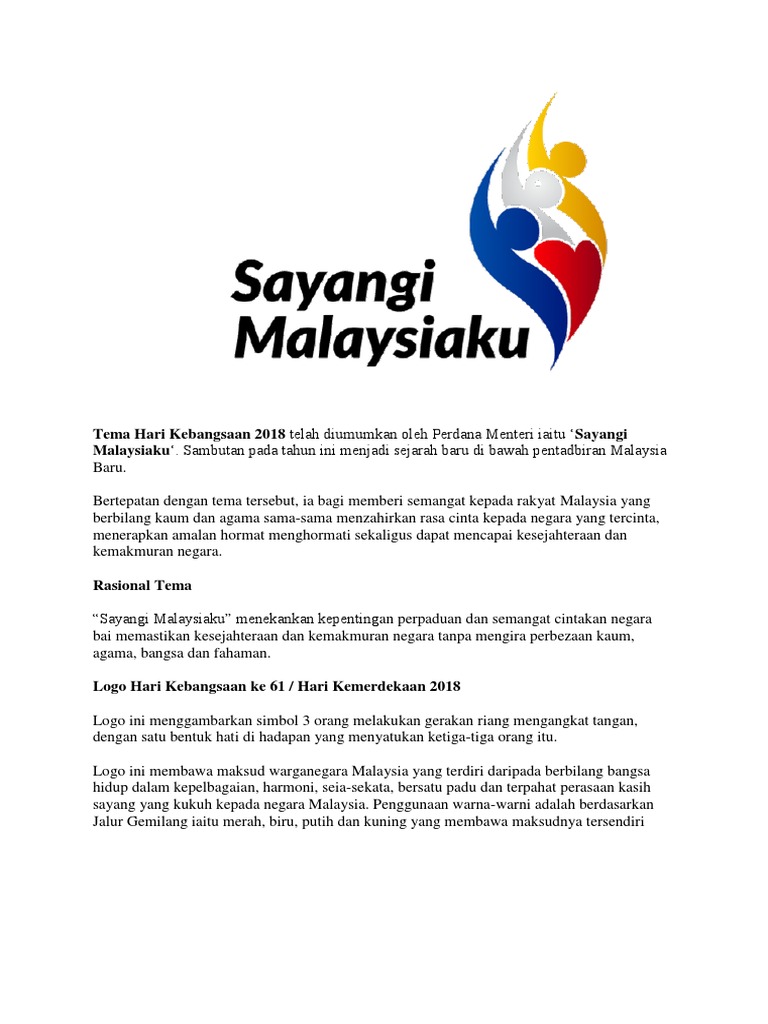 Tema Hari Kebangsaan 2018 Telah Diumumkan Oleh Perdana Menteri Iaitu Sayangi Malaysiaku Sambutan Pada Tahun Ini Menjadi Sejarah Baru Di Bawah Pentadbiran Malaysia