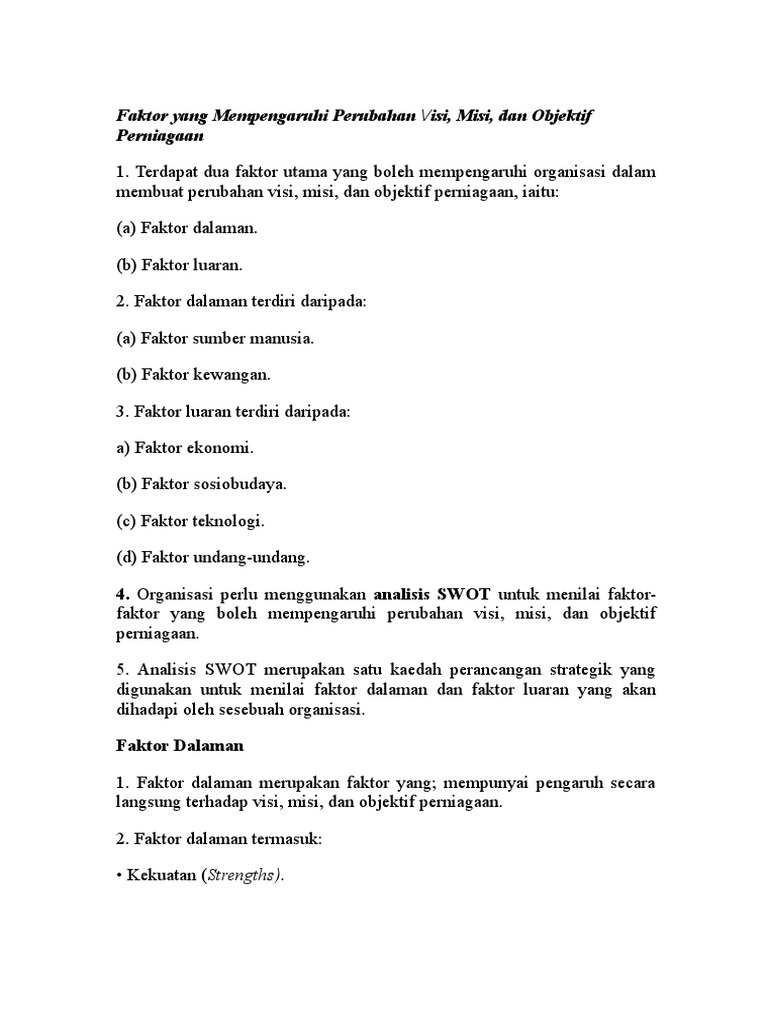 Faktor Yang Mempengaruhi Perubahan Visi Misi Objektif Bab 3